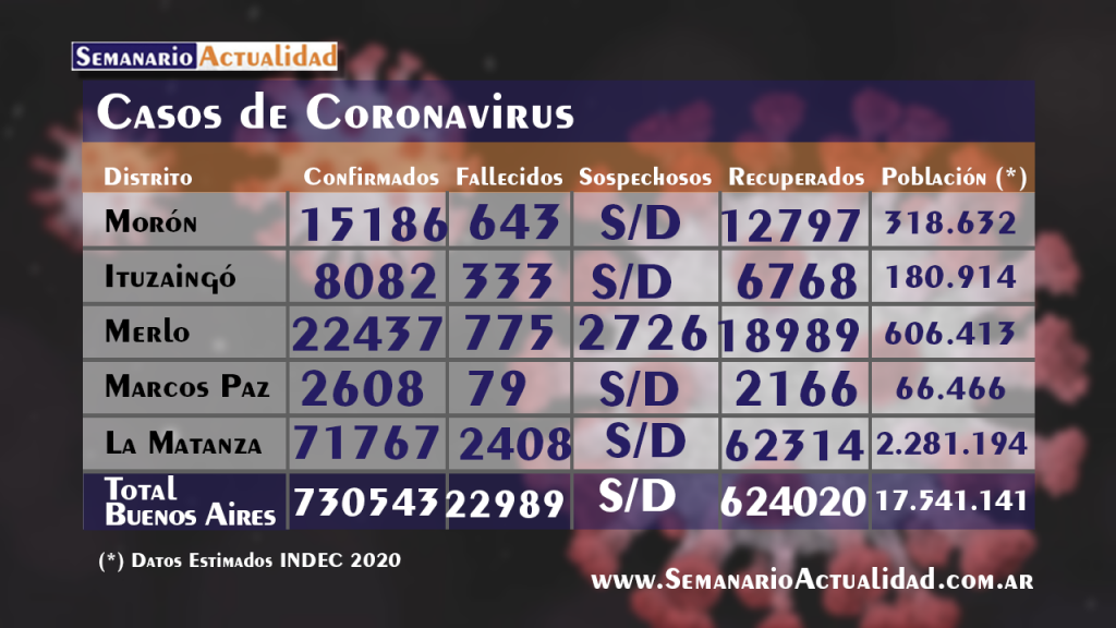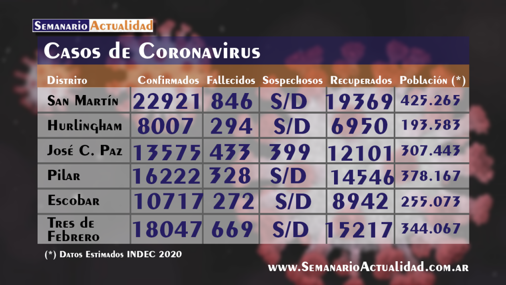 Aclaración: NO todos los municipios actualizan diariamente ni tampoco a la misma hora. Los valores registrados son los últimos oficiales hasta el día de la fecha y hora en que son publicadas las placas