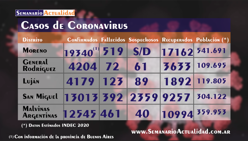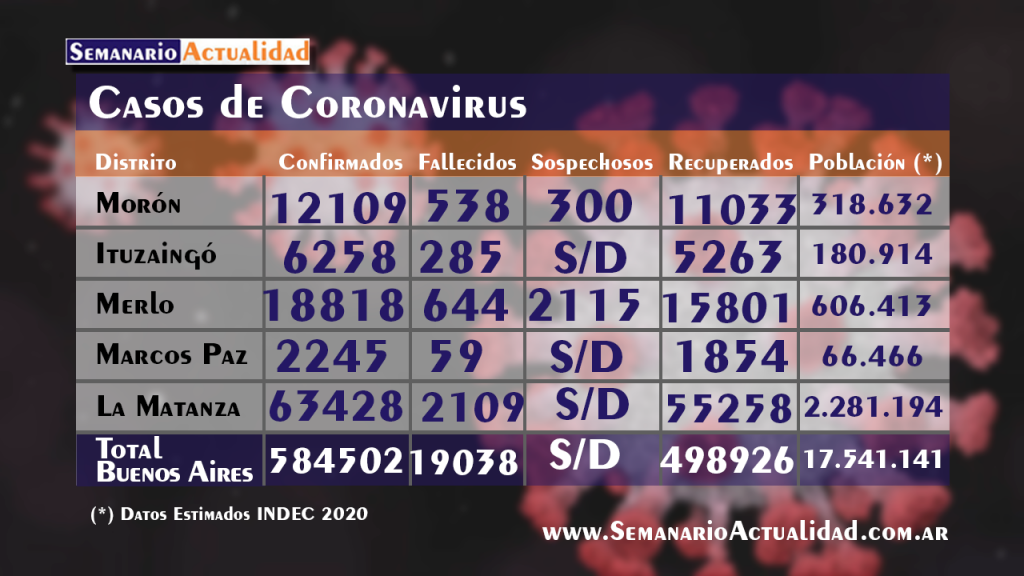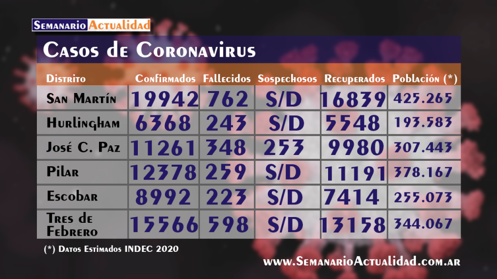 Aclaración: NO todos los municipios actualizan diariamente ni tampoco a la misma hora. Los valores registrados son los últimos oficiales hasta el día de la fecha y hora en que son publicadas las placas