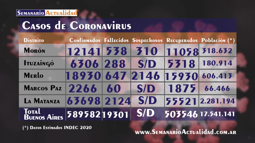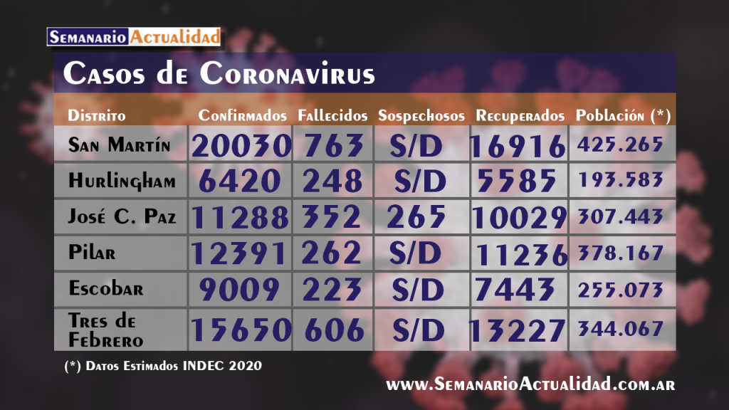 Aclaración: NO todos los municipios actualizan diariamente ni tampoco a la misma hora. Los valores registrados son los últimos oficiales hasta el día de la fecha y hora en que son publicadas las placas