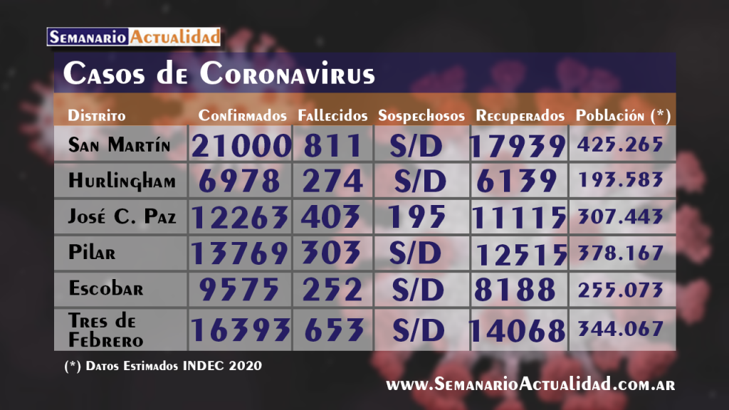 Aclaración: NO todos los municipios actualizan diariamente ni tampoco a la misma hora. Los valores registrados son los últimos oficiales hasta el día de la fecha y hora en que son publicadas las placas