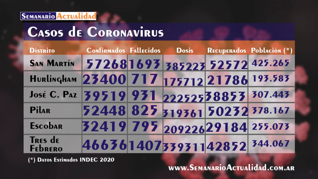 Informe sobre coronavirus en la región: Reporte hasta la mañana del 23 de agosto