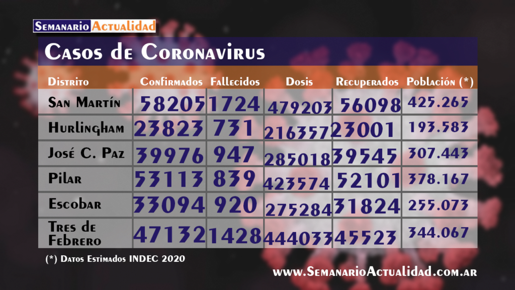 Aclaración: NO todos los municipios actualizan diariamente ni tampoco a la misma hora. Los valores registrados son los últimos oficiales hasta el día de la fecha y hora en que son publicadas las placas