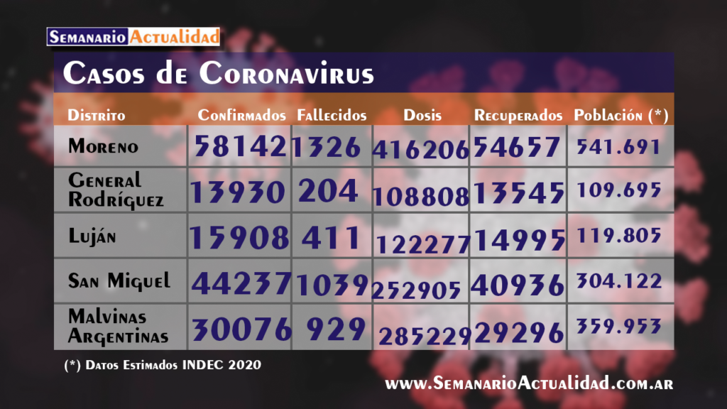 Informe sobre coronavirus en la región: Reporte hasta la mañana del 26 de agosto