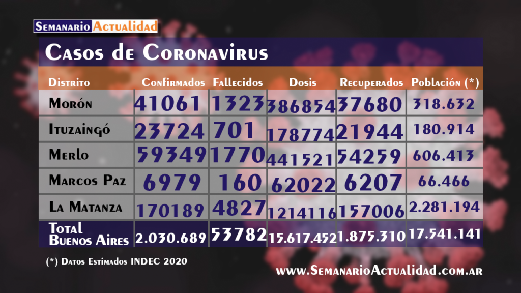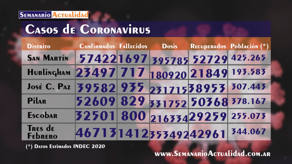 Aclaración: NO todos los municipios actualizan diariamente ni tampoco a la misma hora. Los valores registrados son los últimos oficiales hasta el día de la fecha y hora en que son publicadas las placas