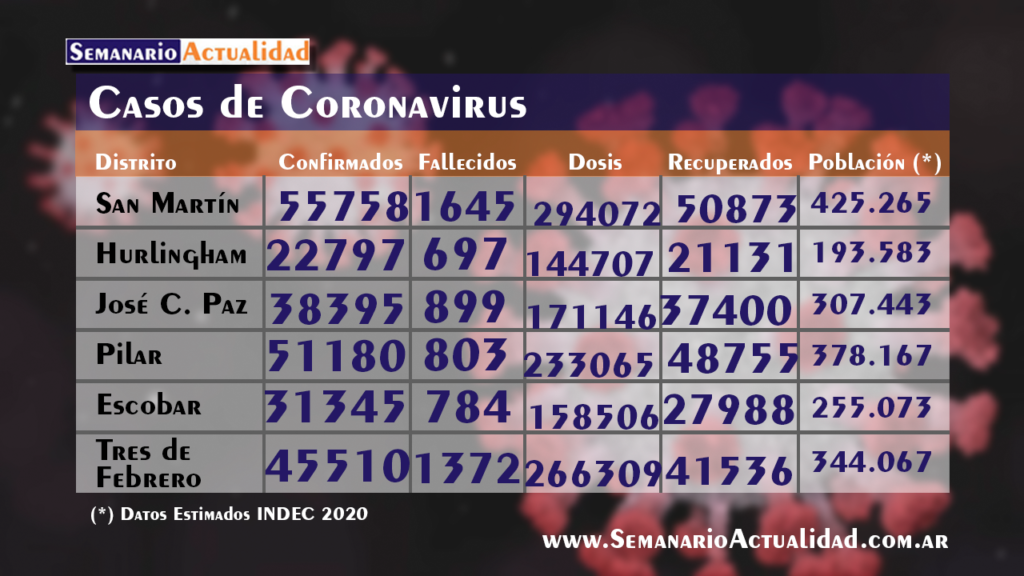 Aclaración: NO todos los municipios actualizan diariamente ni tampoco a la misma hora. Los valores registrados son los últimos oficiales hasta el día de la fecha y hora en que son publicadas las placas