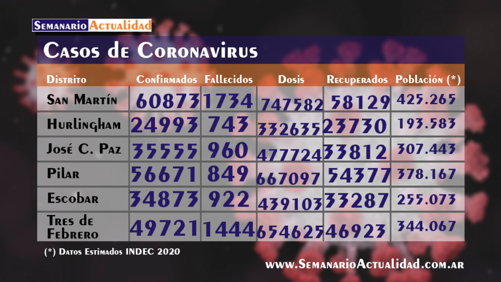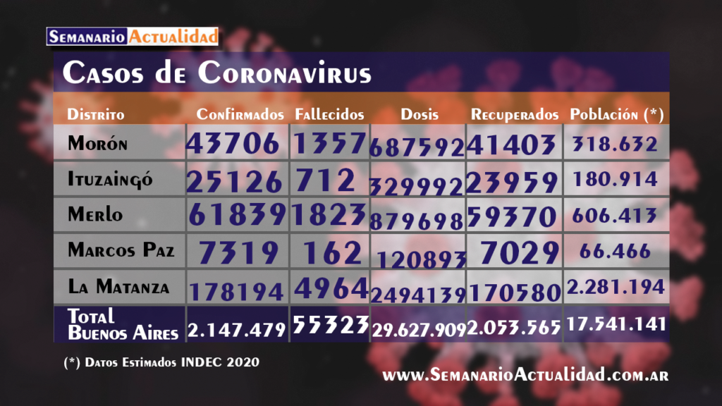 SaludInforme sobre coronavirus en la región: Reporte hasta la mañana del 30 de diciembre Posted on 30 diciembre, 202130 diciembre, 2021 by rodrigos 30 Dic Informe epidemiológico de la región hasta la fecha. Datos de provincia de Buenos Aires Vizzotti: «La Argentina tiene vacunas suficientes» Vecinos del casco centro sur de Moreno volvieron a reclamar por la falta de agua