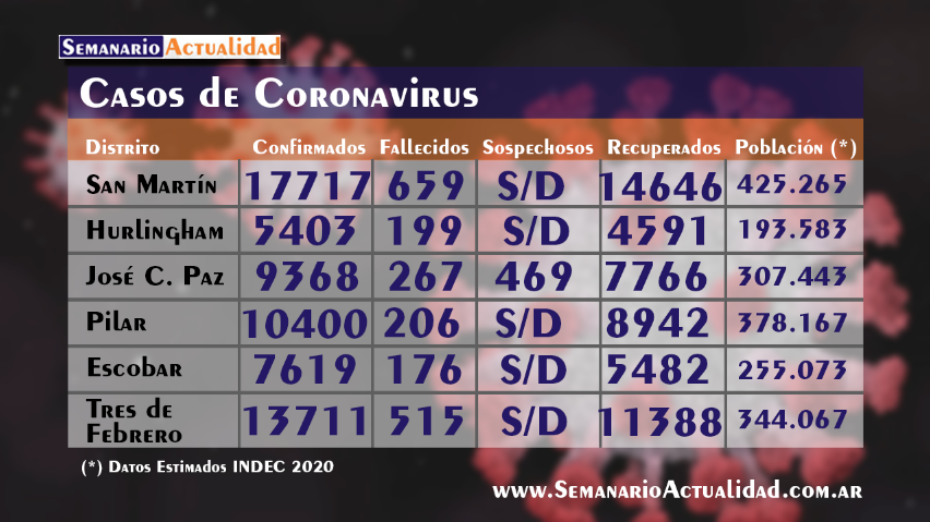 Aclaración: NO todos los municipios actualizan diariamente ni tampoco a la misma hora. Los valores registrados son los últimos oficiales hasta el día de la fecha y hora en que son publicadas las placas