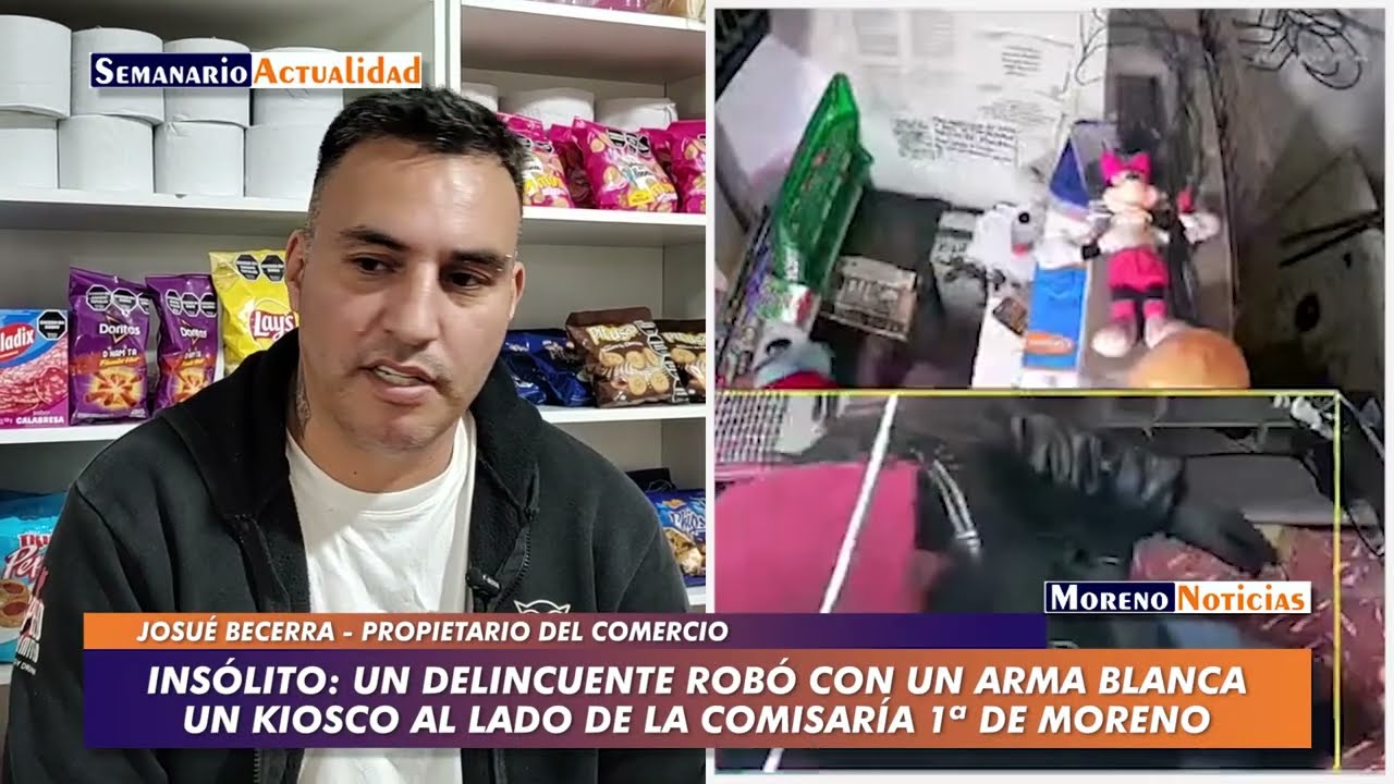 El suceso se registró este lunes 20 de abril alrededor de las 20 horas en un comercio ubicado sobre la calle Belgrano, casi esquina Merlo, lindante a la seccional 1ª del distrito. Armado con una especie de “punta”, el malviviente robó la recaudación y el teléfono celular del empleado. Salió caminando tranquila. Hasta el momento no fue capturado. Entrevista con Josué Becerra, propietario del lugar