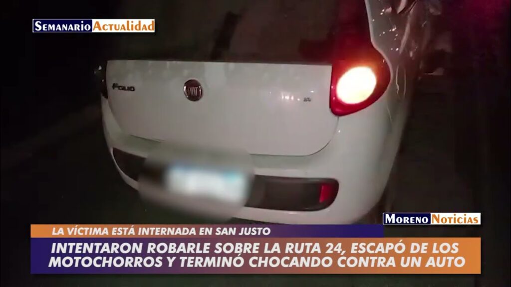 Un hombre de 43 años resultó gravemente herido al intentar escapar de motochorros. Ocurrió sobre Ruta 24, a un centenar de metros del cruce con la Ruta 25. El suceso se registró alrededor de las 7 de la mañana de este lunes 9 de junio. Un hombre de 43 años se dirigía en moto a su trabajo, en una de las empresas que conforman el cinturón industrial de la zona de Cuartel V. En dirección a la Autopista del Oeste, sobre la Ruta 24, pasó la rotonda con la Ruta 25. Ya lo venían siguiendo. Antes de llegar a la calle General Hornos tres motochorros intentaron interceptarlo. Rápido de reflejos, la víctima los eludió y tomó el sentido de circulación contraria. Con tanta mala fortuna que terminó impactando contra un Fiat Palio que marchaba de frente. Resultó gravemente herido. Testigos afirmaron que los delincuentes efectuaron disparos de arma de fuego varias veces antes del choque. Inmediatamente se dieron a la fuga, con sentido a José C. Paz. La víctima fue trasladada en ambulancia (que demoró en la asistencia) al hospital provincial Mariano y Luciano de la Vega, donde se lo trató por varias fracturas. Luego fue derivado a una clínica de la localidad de San Justo, partido de La Matanza, por orden de la ART. Está internado. Este no es un hecho aislado. Se repite diariamente y cada vez con mayor asiduidad. La Ruta 24 depende de la provincia de Buenos Aires. No está terminada y la iluminación es nula. La sufren los vecinos que tienen que transitarla cotidianamente. También en los barrios: La semana pasada habitantes del barrio La Esperanza reclamaron por obras, no solo del gobierno de Axel Kicillof sino también a la municipalidad de Moreno por las calles internas, algunas de ellas destrozadas.