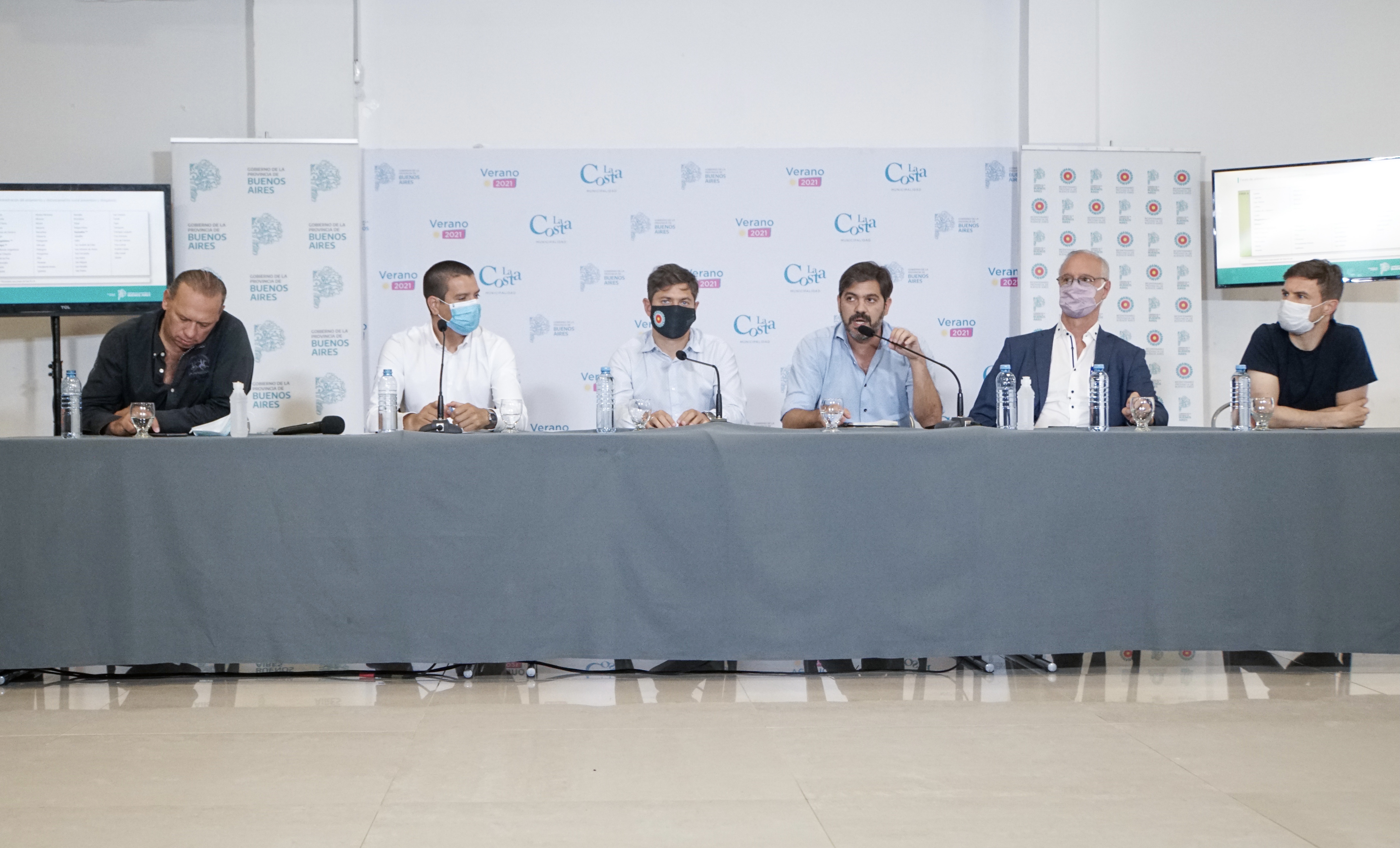 El gobernador Axel Kicillof afirmó que “se está viendo un crecimiento muy acelerado de los casos”, y remarcó la necesidad de continuar con los cuidados y reducir lo más posible los contactos para lograr que los contagios bajen. Fue en el marco de una conferencia de prensa realizada este mediodía en la localidad de San Bernardo, partido de La Costa. El Gobernador estuvo acompañado por el jefe de Gabinete, Carlos Bianco, y los ministros de Salud, Daniel Gollan; Seguridad, Sergio Berni; y Producción, Ciencia e Innovación Tecnológica, Augusto Costa; así como por el intendente municipal Cristian Cardozo.