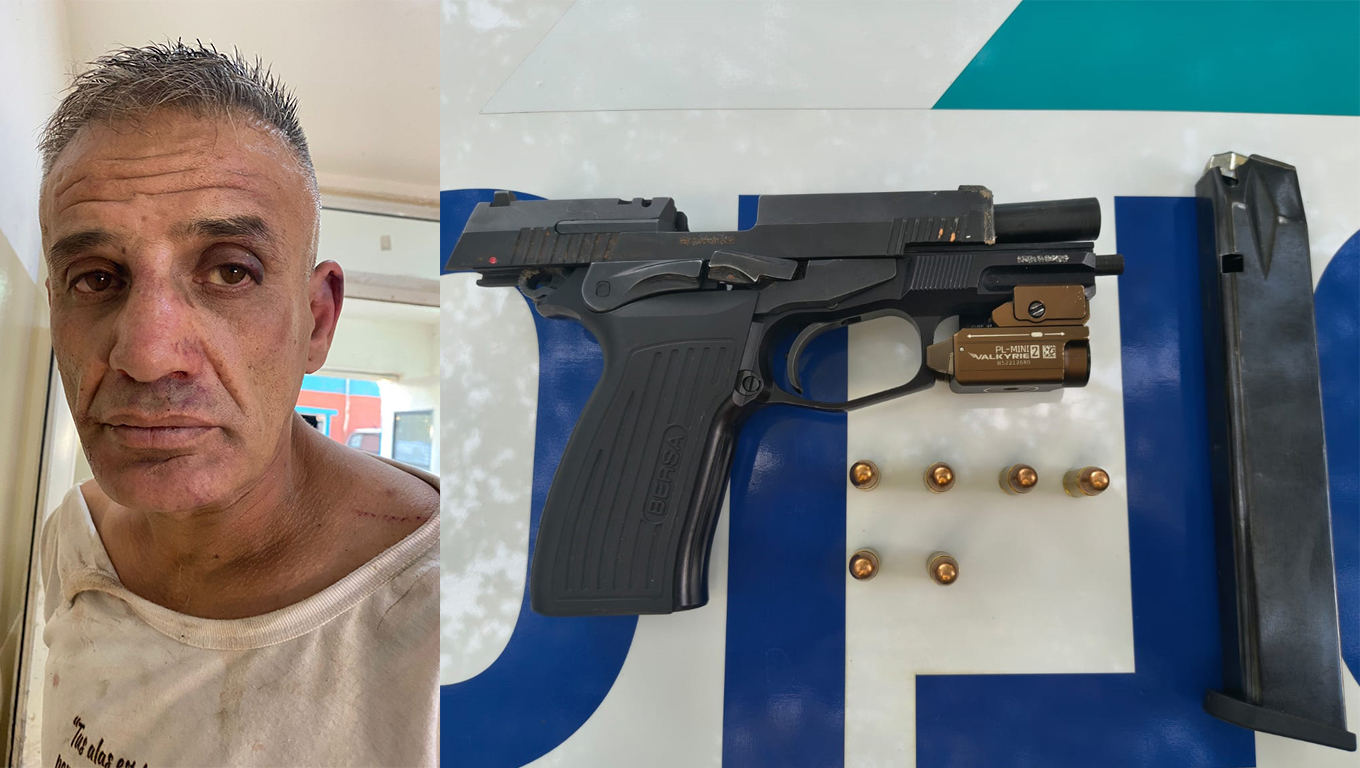 El sujeto comenzó a correr e intentó esconderse en la mencionada casa cuando, rodeado, fue reducido. En su poder fue secuestrada una pistola Bersa Thunder calibre 9 mm, con numeración suprimida y cargador extendido. Además tenía una linterna táctica colocada bajo el cañón. El móvil quedó con 11 bonitos agujeros. Esposado, fue llevado al hospital provincial Mariano y Luciano de la Vega, para que le realicen la evaluación médica de rigor.