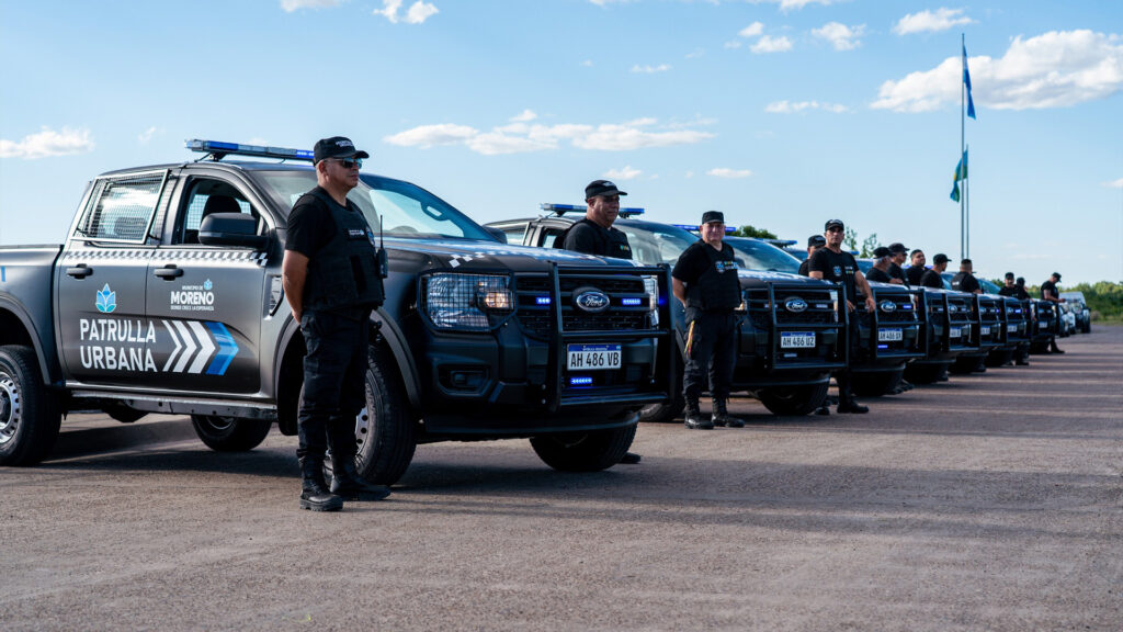 Con el objetivo de fortalecer la prevención y la seguridad en Moreno, la intendenta Mariel Fernández, junto al secretario de Seguridad local, Ismael Castro, presentó 15 nuevas patrullas en el Distrito Ecológico Roggero DER, una zona clave para el desarrollo turístico local. Con los nuevos móviles que fueron adquiridos a través de la modalidad Leasing Banco Provincia, se llega a 40 patrullas que conforman la Guardia Urbana y a los 200 móviles incorporados durante la actual gestión. Durante la presentación, la jefa comunal expresó: “A pesar de la difícil situación económica que atravesamos, realizamos un gran esfuerzo para seguir invirtiendo en el cuidado de nuestra comunidad” y agregó “Siempre les cuento a los contribuyentes nuestro compromiso de tener una administración que cuide los fondos municipales y que lo pueden ver expresado en cada obra, en infraestructura y en el equipamiento. Todo el esfuerzo que hacen los vecinos y vecinas de Moreno se invierte para la misma comunidad y con mucho empeño el Municipio pudo comprar estos móviles”.
