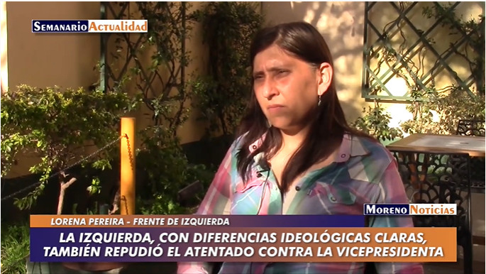 Se realizó una sesión extraordinaria del Honorable Concejo Deliberante de Moreno donde se repudió el intento de magnicidio contra la vicepresidenta de la Nación Cristina Fernández de Kirchner. «Juntos» no concurrió al recinto y llamó a una conferencia de prensa. El Frente de Izquierda se hizo presente y condenaron el suceso. Entrevista con Lorena Pereira (Frente de Izquierda)