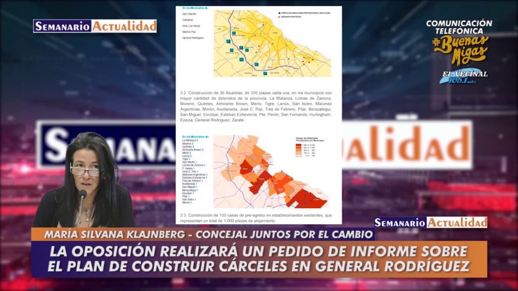 PolíticaLa oposición realizará un pedido de informe sobre el plan de construir cárceles en General Rodríguez Posted on 28 octubre, 202028 octubre, 2020 by rodrigos 28 Oct Entrevista con María Klajnberg, concejal de Juntos por el Cambio Comenzarán a capacitar a los promotores que vacunarán contra el coronavirus El ex secretario de Interior de Macri y actual diputado García de Luca analiza la situación política