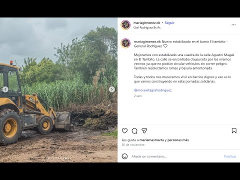 La secretaria de Obras Públicas de la municipalidad de Moreno, María Giménez (concejal en uso de licencia desde el 2023, segunda en la línea de sucesión de la intendenta Mariel Fernández) está desarrollando una fuerte tarea militante en General Rodríguez. Esta actitud generó rispideces con el gobierno local, comandado por Mauro García, ya que Giménez realiza trabajos de obras públicas en ese distrito.