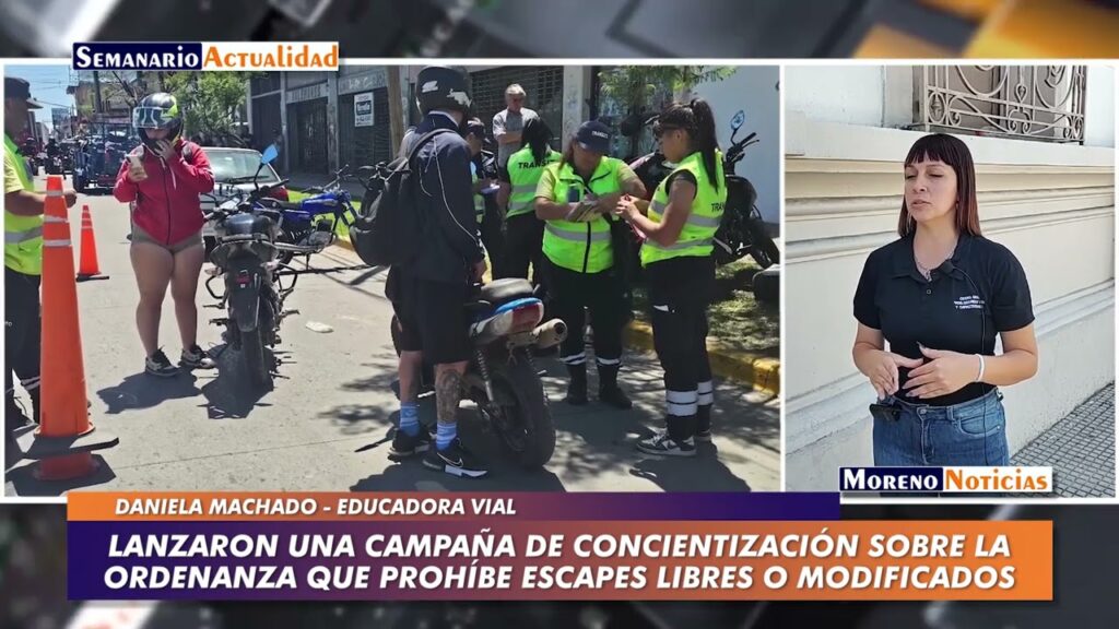En Moreno está vigente una ordenanza que prohíbe la circulación de motovehículos con caños de escapes libres o modificados. Desde la secretaría de Tránsito y Transporte de la municipalidad de Moreno lanzaron una campaña de concientización, que apunta a proteger a personas con síndrome del espectro autista, veteranos de guerra y mascotas, entre otros. Profundizaran el secuestro de vehículos. Entrevista con Daniela Machado, educadora vial