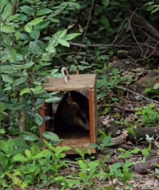 Una comadreja overa (Didelphis albiventris) fue liberada en la Reserva Natural Los Robles, luego de haber sido acercada por un vecino al lugar.