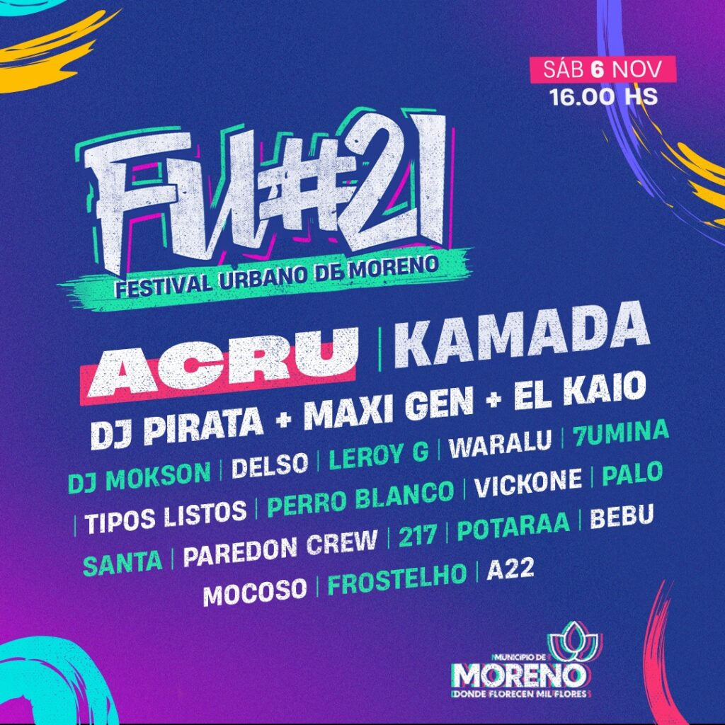 Con una nutrida grilla de actividades, el gobierno municipal lanza el FU#21 – Festival Urbano de Moreno este sábado 6 de noviembre desde las 16 Hs. en la Plaza Buján.