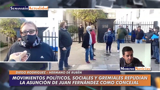 PolíticaMovimientos políticos, sociales y gremiales repudian la asunción de Juan Fernández como concejal Posted on 27 mayo, 202127 mayo, 2021 by rodrigos 27 May Entrevista con Diego Rodríguez, hermano de Rubén, una de las víctimas de la tragedia de la Escuela 49 del barrio Aberasturi El personal sanitario de la Maternidad Estela de Carlotto cortó Ruta 23 en reclamo de seguridad Hospital de Moreno: «Es una pelea cabeza a cabeza contra el colapso sanitario»