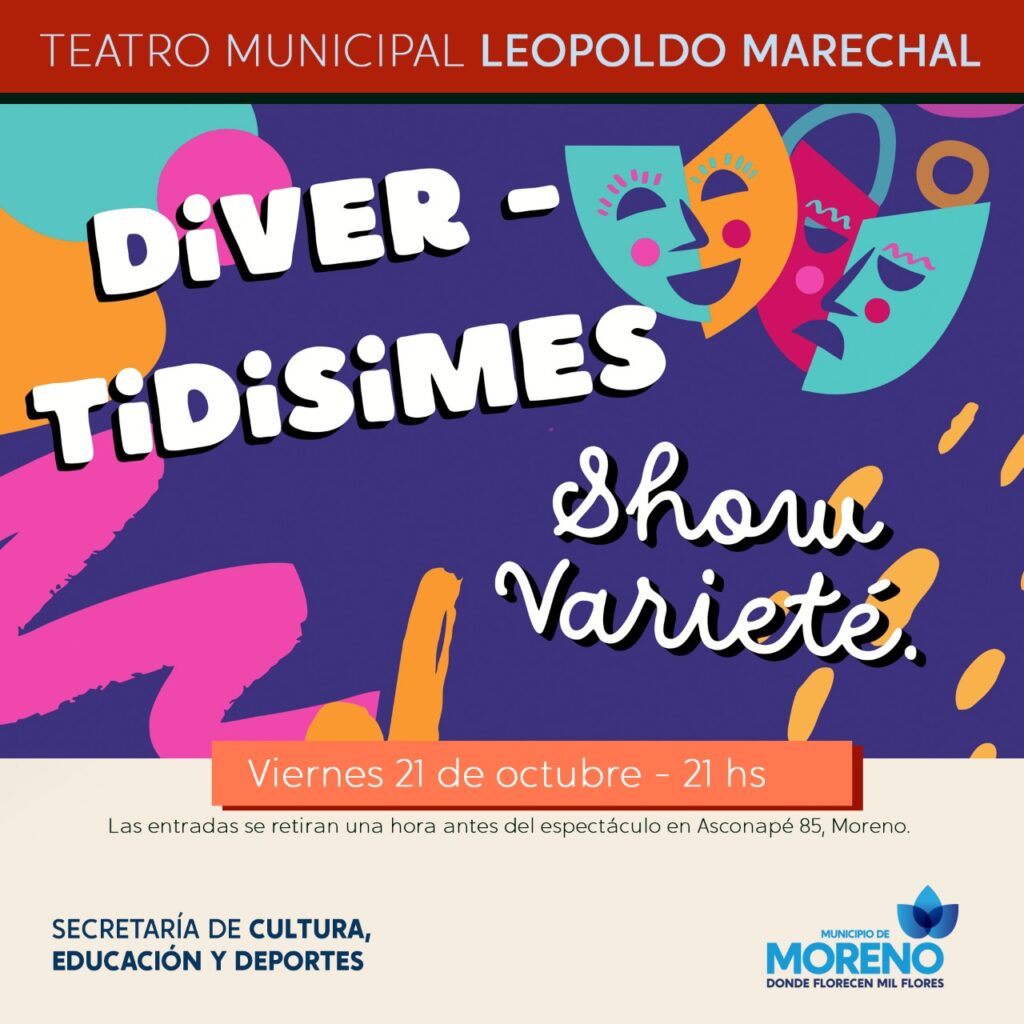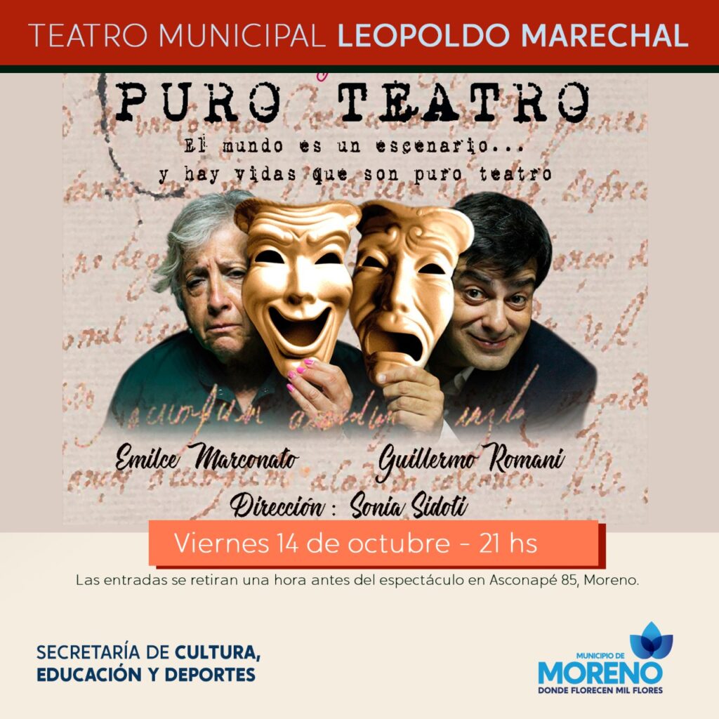 El Municipio de Moreno invita a toda a la comunidad a disfrutar de las obras teatrales y musicales para todas las edades que se presentarán durante todo el mes de octubre en el Teatro Municipal “Leopoldo Marechal”. La entrada es libre y gratuita y las mismas se retiran de la boletería una hora antes de cada función en Asconapé 85.