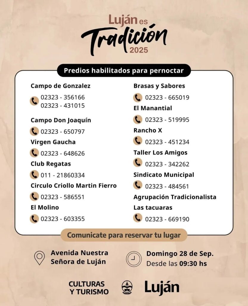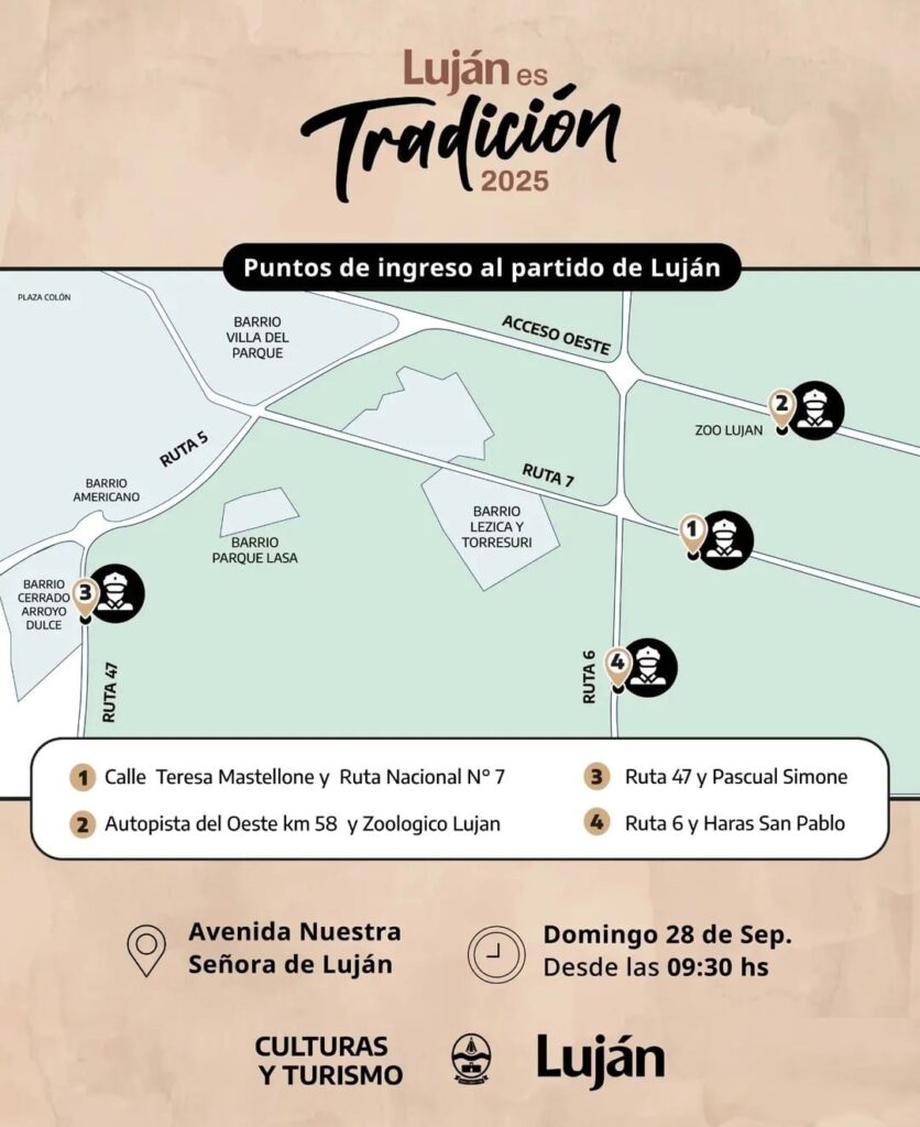 En las siguientes ilustraciones, junto al Municipio de Luján, compartimos la información que nos ayudará a todos para une mejor y adecuada organización de la querida Peregrinación Gaucha 2025.