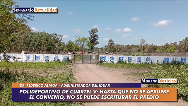 El administrador del IDUAR Dr. Federico Aliaga aclara que la municipalidad de Moreno tiene la posesión del predio donde se construye el polideportivo «Diego Armando Maradona» de Cuartel V desde hace meses. Pero el titular de la tierra sigue siendo Jorge Bellsola Ferrer. El funcionario ratifica que para poder escriturar el terreno es necesario el tratamiento del convenio en el Concejo Deliberante