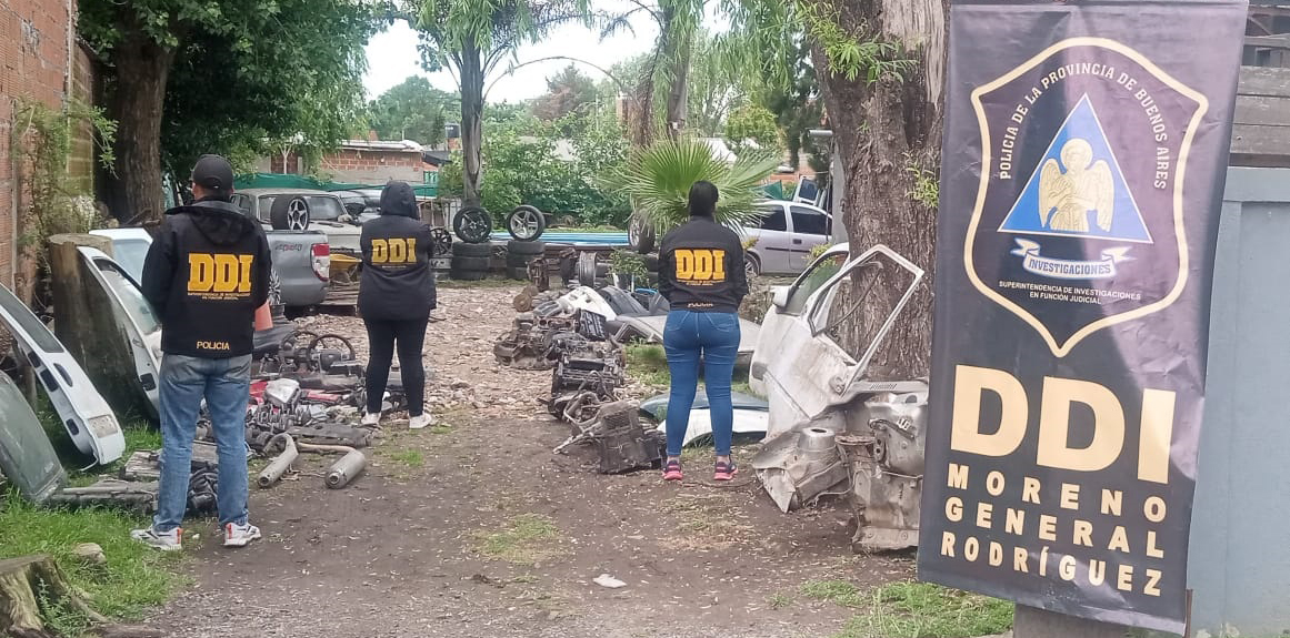 Un operativo de la Detección de Delitos Complejos de Moreno y General Rodríguez terminó con la detención de tres personas —dos hombres de 45 y 21 años y una mujer de 25— acusadas de estar vinculadas a amenazas agravadas, encubrimiento y tenencia ilegal de armas. Durante los allanamientos, realizados a partir de una causa por amenazas, las autoridades hallaron un desarmadero ilegal con autopartes de vehículos robados.