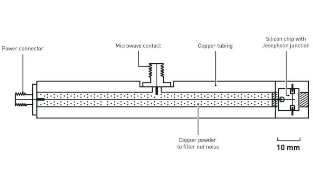 Clarke, Devoret y Martinis construyeron un experimento utilizando un circuito eléctrico superconductor. El chip que contenía este circuito tenía un tamaño aproximado de un centímetro.