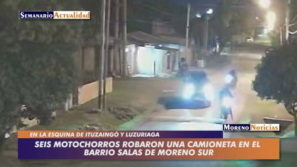 El suceso se registró el pasado jueves 26 de marzo a las 23:32 en la esquina de Ituzaingó y Luzuriaga del barrio Salas de Moreno Sur. Seis delincuentes en tres motos asaltaron a un hombre que había llegado minutos antes a su casa. Aprovechando que la víctima estaba bajando cosas del baúl, lo encañonaron y se llevaron la camioneta. Se dieron a la fuga en dirección al centro de Moreno. El vehículo fue recuperado dos horas después en la zona de Catonas.