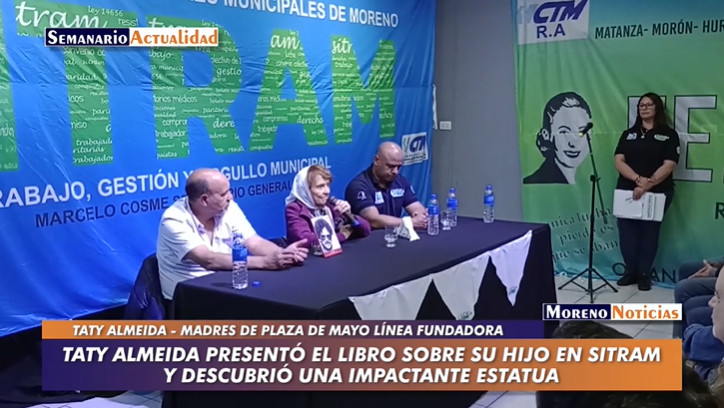 En la sede del Sindicato de Trabajadores Municipales de Moreno, la Madre de Plaza de Mayo Taty Almeida presentó el libro «Alejandro, por siempre amor» a sala llena. Luego descubrió una impactante estatua en la puerta del gremio, confeccionada por Pablo y Martha Ibarra